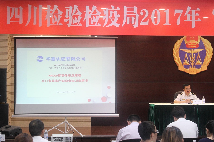 2017年6月29日,应四川检验检疫局邀请,华鉴认证有限公司领导参加了四川检验检疫局2017年“逐一帮扶”认证监管业务培训工作,本次培训参会领导有:四川省检验检疫局邓明辉副局长、认证建管处杨诚处长、重庆、云南、贵州、青海、西藏等省局认证监管处领导,以及:四川省出口食品备案企业代表共200余人。培训会上,华鉴认证..进行了:HACCP管理体系及原理、出口食品生产企业安全卫生要求、“同线同标同质”三同要求专题培训,参会人员普遍反映收获颇丰,受益匪浅。