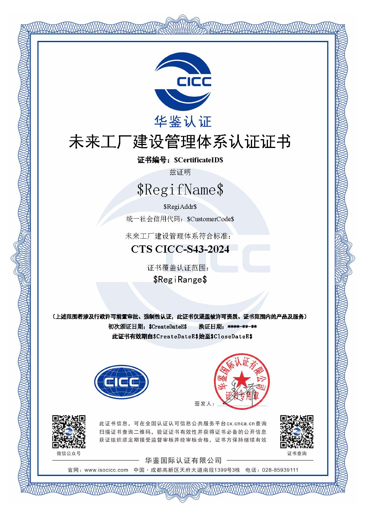 2.申请方应按照国际有效标准(CTS CICC-S43-2024)的要求在组织内建立管理体系,并实施运行至少3个月以上;